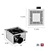 Housing Size: 9in x 9in x 7.6in with 4in duct, ceiling mounting opening: 9.4in x 9.4in