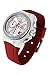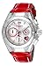 Chronograph White dialwith 60sec, 24hr and 60min subdials with date display, Silver tone bezel with 124 crystal accents, Red leather band, screw down crown