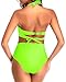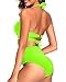 Neon Green retro top with high waist bottoms bathing suits makes you look amazing during a beach vacation, swimming pool, or honeymooning in Hawaii, etc.