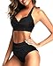 Black retro top with high waist bottoms bathing suits makes you look amazing during a beach vacation, in a swimming pool, or honeymooning in Hawaii, etc.
