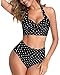 Black little dot retro top with high waist bottoms bathing suits makes you look amazing during a beach vacation, in a swimming pool, or honeymooning in Hawaii, etc.