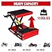 HIGH PERFORMANCE - With a max load capacity of 1100 lbs., the lift jack can raise the motorcycle to a most comfortable level for your work between 3.5"-14.5"; The jack itself can be simply lifted out and set on the ground; It is perfect to use in the garage, shop or at the track