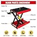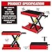 ANTI-SLIP DESIGN - The top surface of the stand has a durable rubber pad with striped pattern to help prevent slippage and scratches; The wide top platform measures 14.4" x 9", which has a large contact area with the motorcycle to raise and lower it steadily