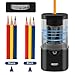 【Colored Pencil Sharpener】 This professional pencil sharpener will start sharpening automatically when you insert a pencil. Take out the pencil when the motor sound changes and the resistance of sharpening decreases. Great for graphite and colored pencils, such as Prismacolor Premiers, Derwent, Verithins, Faber-castell, Koh-I-Noor Progresso. Please note that it is not recommended to sharpen SOFT CORE pencils as it may cause jams in blade.