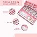 【5 Bill 8 Coin Compartments】 The money box has a built in cash tray that comes with a removable coin tray to maximize the partitions to 5 bill slots and 8 coin slots. The front panel has 1 media compartment for large bills, cheques, and receipt storage without opening the drawer.