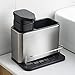 Stainless-steel sink caddy to organize dishwashing tools: Liquid soap dispenser keeps hand or dish soap within easy reach on kitchen countertops and sinks; Ideal for soap, hand lotions; Sponge holder keep sponges, scrubbers, brushes and more in one convenient spot.