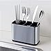 Countertop silverware holder. 7.1" L x 3.4" W x 5.2" H. This flatware organizer has 4 compartments for different cutlery