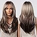 ✏️Wig Type: Long wavy wig with full bangs, realistic bangs can perfectly modify your forehead.Choosing this long wavy wig can quickly increase your hair volume and length, give you more vitality and rich layers in a few minutes, make you more charming, confident and stunning, and it will provide you with more surprises.