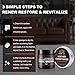 Leather Conditioner & Restore Kit: The Leather cream and leather restorer kit for couches give your faux and authentic leather items a renewed, finished look. Leather Repair Kit Contains all the products needed for leather repair and maintenance. including Leather Recoloring Balm(8OZ), Mink Oil(100ML) with free starter tool kit- 2pcs Sponges, 1pcs Spoons, 1pcs Brush Pen, 1 Pair Rubber Gloves.