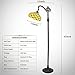 Antique Tiffany Floor Lamp With Arch Pole: Features a larger standing handmade stained glass tiffany lamps with a dark bronze finish resin arch pole base position in the corner of a room or next to a seating area on the floor. At the top, 1 light bulb socket host down-light sources. 62" central arch pole can adjust the lamp shade to position the light area.With a heavy sturdy base, the pole support and prevent the real stained glass lamp shade from falling down.