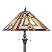 TIFFANY FLOOR LAMP in 63” Tall and 16” Wide, 100% handmade stained glass mission style lampshade and resin construction base.