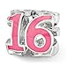 UNIQUE FEATURES - Commemorate a milestone birthday with a prominent sterling silver number charm! This symbolic number 16 bead features a three-sided design, one in polished, one in pink enamel and the third in clear Swarovski Elements. It measures approximately 9mm in width by 10mm in length and has a 4mm core that is interchangeable as well as compatible with Reflections and other popular 3mm width bead style bracelets and necklaces.