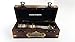 Size: 2.5X2.5X.75inch, leather case. Size:3" dia. x 1.25"H