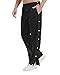 Features:Elastic waist, Striped side with Snap button, relaxed fit straight leg training pants. Full side snaps from top to bottom and you can open or close the pants according to your needs.