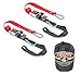 SECURE ‘S’ HOOKS WITH SAFETY LOCK | Secure Your Stuff Without Worrying About Damaging Tools or Vehicle Surfaces | Premium S Hooks are Rubber Coated to Prevent Chipped Paint, Marks & Dents—with Tough Safety Lock for Added Security | Easy-Grip Ratcheting Mechanisms Provide Excellent Control, Comfort & Grasp