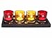 The package contains : 4 colored glass t light holders + 1 Black wood tray.