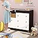 【Security & Safety Tested】Our changing table dresser adopts soft and durable leather handles, the edges of the changing table nursery are round corners design. And the anti-tipping design is more secure for toddlers and naughty kids. Our changing table features a soft, waterproof changing pad and a safety belt to keep your baby safe on the table top while you change your baby's diaper. Our baby changing table dresser is ASTM Certified and meets all current safety standards.