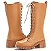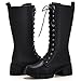 Lace Up Design for Convenient: Side Zip closure along the side of platform boots for easily wearing on or off, front lace up for calf circumference adjustment.