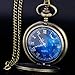 Blue Starry Pocket Watch:the pocket watch itself is more refined than the picture, the perfect pocket watch!Roman numerals scale, very special; heavily engraved front with exquisite Blue starry sky patterns, vintage appearance design, really good as a fashion accessory.