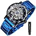 【LUXURY STEAMPUNK STYLE】Luxurious diamond design ,Classic skeleton dial, Roman numeral dial, give you exceptional artistic beauty.This skeleton watch with a transparent lower cover, you can see the movement of the watch movement.