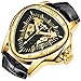 Excellent Quality: The mechanical watch uses imported movement, gold stainless steel case and black leather strap. Additional features include luminous, water resistant to 1 Bar.