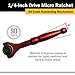 90 Tooth reversible ratcheting mechanism produces a minimal sweep of 4 degrees - perfect for tight, confined, and hard-to-reach areas