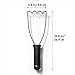 Mash by pressing wires into cooked food until desired consistency is achieved; side wires scrape the sides of bowls and pots while mixing and mashing