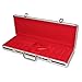 This 500 Ct. Aluminum Poker Chip case has space for 500 poker chips, 2 decks of cards, and 5 dice. Our cases have wooden dividers and NOT plastic dividers like other brands. The interior is black. For shipping protection, this case is enclosed in styrofoam.