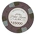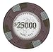 These chips are available in 12 different denominations: $0.25 cents, $0.50 cents, $1, $2, $5, $10, $25, $100, $500, $1000, $5000, & $25,000.