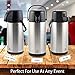 EASY TO USE AND DURABLE » An thermal carafe airpot of your dreams - Simply push down on the pump on top and watch your favorite beverage come out the spout. Whether it be iced tea, hot chocolate, mulled wine, milk, or coffee, there is no limit! The stainless steel hot water dispenser has a base that conveniently rotates to easily turn in your direction without having to lift the urn.
