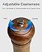 5-Level Adjustable Coarseness. Choose the coarseness of grains according to your preference. Rotate the knob on the bottom clockwise for a finer grind or anticlockwise for a coarse grind. Utilize the durable and safe 304 stainless steel drive shaft to bring spices into wanted granular sizes. Spread freshly ground spices for added flavor and taste.