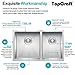 EASIEST DOUBLE SINK TO MAINTAIN Tight radius R10 curved corners with sloped base for fast drain – Gentle wipe keeps sink sparkling forever - Highest rating by Kitchen Sink Buying Guide