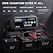 Perfect for all lead-acid, flooded or sealed maintenance free batteries (AGM and gel cell), also Complete 4-step charging program (Initialization, Bulk Charge, Absorption Mode, Float Mode)