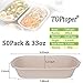 DIMENSIONS: TOPtoper paper bowl, a set of 50, can hold 25 ounces, container height: 2.3 in, cup bottom: 4.7 in, top edge diameter: 8.6 in. Large size, perfect size and easy to use.