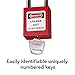 Easy Identification - Lockout tagout lock set with matching numbers engraved on keys and padlock body; each lock in the pack has unique numbers