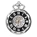 1.SPECIAL DESIGN - Classical pocket watch with double cases. Dream Dragon pattern half hunter, Skeleton Blue Roman Numerals Dial with Luminous pointers. Dream dragon stands for powerful, husky and courageous. Fashionable and attractive! * Retro flower shape pointers, allow to read the times easily.