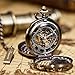 ☞ 1. SPECIAL DESIGN - Classical pocket watch with double cases. Dream Dragon pattern half hunter, black Skeleton Dial golden Roman with fancy pointers. Dream dragon stands for powerful, husky and courageous. Fashionable and attractive! Fluorescent pointers, allow to read the times in the low light environment.