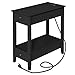 【Charging Nightstand】: Black nightstand with 2 AC and 2 USB power outlets provides enough storage space and a large number of charging ports that can easily meet your phone, table lamp, or computer charging needs, 6.5ft power cord for a black end table could place more freely is perfect for small space