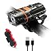 ✅SUPER-BRIGHT BIKE LIGHT SET: Unlike 90% of the competition that makes false, exaggerated claims, our powerful bike front light has a real, lab-tested output of 500 LUMENS. It illuminates up to 900 feet ahead, provides superior DAYTIME VISIBILITY, and has 5 LIGHTING MODES to suit any terrain.
