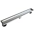 【Linear Shower Drain Size】 The size of linear drain is 60 inches in length and 2.75 inches in width. The diameter of outlet is 2 inches.Shallow 'V' Profile to Aide Flow of Water to Shower Drain Outlet.It can be achieved high displacement with an average of 42.5 L/min (without filter mesh), Enhanced internal slope virtually eliminates water remaining in the channel.