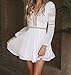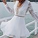 Features: Long sleeve, v neck, floral lace, hollow out patchwork, above knee length, white, midi dress