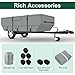 3 YEAR WARRANTY & RICH ACCESSORIES:RV cover for 8 - 10 ft pop-up folding camper(PLEASE MEASURE BEFORE PURCHASE!),3* bottom straps, 2* front & rear panel straps, 2* extra straps, 1*storage bag; Backed by a Tuszom 36-month limited warranty, We always provide you with a satisfactory solution!