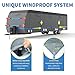 ACCESSIBILITY DESIGN: weighted buckle toss-under for easy installation of bottom windproof straps; Rollable zippered Door allow access to the RV doors and engine areas anytime. There are total of 8 vents can effectively reduce the wind pressure, maximize the evaporation of water under the cover, keep the inside of the cover clean, and the quick drying system can protect your trailer at the same time; 4 reflective strips on front and rear panels provide maximum safety at night or parking