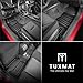APPEARANCE: The top layer material is designed to match the leather texture interior of most vehicles. As a result, TuxMat completes the luxurious interior of your vehicle. The material has a three-layer construction, top layer is Vinyl to provide durability and matching texture, middle layer is EVA to provide an enduring vertical structure, the bottom layer is anti-skid cloth that protects the carpet of your vehicle.