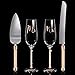 Material: the toasting flutes are made of glass, the cake knife and server are made of rustproof stainless steel, feature lightly serrated edges for precision slicing and serving