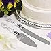 This gift boxed wedding or birthday cake serving set includes a 13in serrated knife and an 11in server with stainless-steel blades and 4in faux crystal non-slip handles made of acrylic.