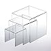 Set of 3 small cubic acrylic nesting risers in 3 sizes (3”x3”x3” 4”x4”x4” & 5”x5”x5”) for different display items in parties or events.