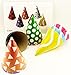 Elegantly packaged: Boxed 12 fun colorful cone party hats in various attractive color/pattern designs ready to create party mood sprit and atmosphere.
