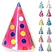 Boxed: 12 fun metallic cone party hats with various colors