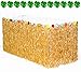 Package includes: one 108in x 29in raffia-color grass table skirt with beautiful hibiscus flowers, twelve 8in x 6.5in tropical green faux palm leaves, and five pairs sticky-backed Velcro straps. 9ft long table skirt length covers 3 sides of a 6ft table.